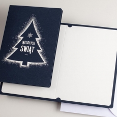 rozmiar: Kartka z najnowszej kolekcji świątecznej, ozdobiona została artystycznym motywem świątecznym. Fantazyjny kształt choinki wykonany za pomocą srebrnej folii. Złocony Świąteczny Napis życzeń uzupełnia kompozycje Kartki. środek/wkładka (do nadruku treści/życzeń/logo): koperta (z paskiem samozaklejającym): Możliwość zamówienia zamiennie koperty ecru z paskiem samozaklejającym lub klejonej na mokro w kolorze złotym, srebrnym, eko, granatowym, zielonym, czerwonym. Ceny Kopert. sposób łączenia środka z okładką: