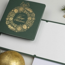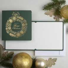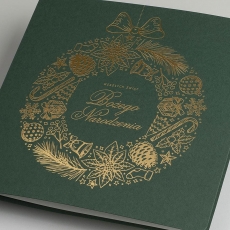rozmiar: Kartka z najnowszej kolekcji świątecznej, ozdobiona została artystycznym motywem świątecznym. Fantazyjny kształt stroika świątecznego wykonany został za pomocą złotej folii. środek/wkładka (do nadruku treści/życzeń/logo): koperta (z paskiem samozaklejającym): Możliwość zamówienia zamiennie koperty ecru z paskiem samozaklejającym lub klejonej na mokro w kolorze złotym, srebrnym, eko, granatowym, zielonym, czerwonym. Ceny Kopert. sposób łączenia środka z okładką: