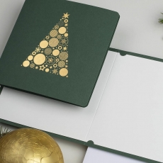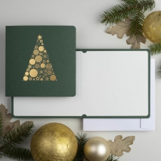 rozmiar: Kartka z najnowszej kolekcji świątecznej, ozdobiona została artystycznym motywem świątecznym. Fantazyjny kształt choinki świątecznej wykonany został za pomocą złotej folii. środek/wkładka (do nadruku treści/życzeń/logo): koperta (z paskiem samozaklejającym): Możliwość zamówienia zamiennie koperty ecru z paskiem samozaklejającym lub klejonej na mokro w kolorze złotym, srebrnym, eko, granatowym, zielonym, czerwonym. Ceny Kopert. sposób łączenia środka z okładką: