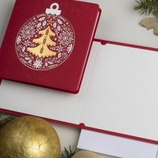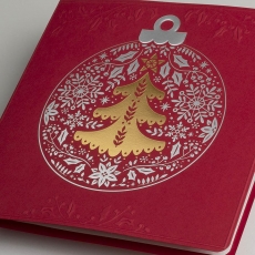 rozmiar: Kartka z najnowszej kolekcji świątecznej, ozdobiona została artystycznym motywem świątecznym. Fantazyjny kształt bombki wykonany za pomocą srebrnej folii. Motyw Złotej Choinki wzbogaca projekt kartki. środek/wkładka (do nadruku treści/życzeń/logo): koperta (z paskiem samozaklejającym): Możliwość zamówienia zamiennie koperty ecru z paskiem samozaklejającym lub klejonej na mokro w kolorze złotym, srebrnym, eko, granatowym, zielonym, czerwonym. Ceny Kopert. sposób łączenia środka z okładką: