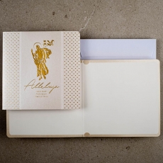 rozmiar: Kartka z najnowszej kolekcji świątecznej, ozdobiona została artystycznym Wzorem Religijnym. Fantazyjny motyw Religijny wykonany został za pomocą złotej folii i tłoczeń. Elementy Złotych Zdobień wzbogacają projekt kartki. Złocony Świąteczny Napis życzeń "Alleluja, Happy Easter, Frohe Ostern, Wesołych Świąt" uzupełnia kompozycje Kartki. środek/wkładka (do nadruku treści/życzeń/logo): koperta (z paskiem samozaklejającym): Możliwość zamówienia zamiennie koperty ecru z paskiem samozaklejającym lub klejonej na mokro w kolorze złotym, srebrnym, eko, granatowym, zielonym, czerwonym. Ceny Kopert. sposób łączenia środka z okładką: